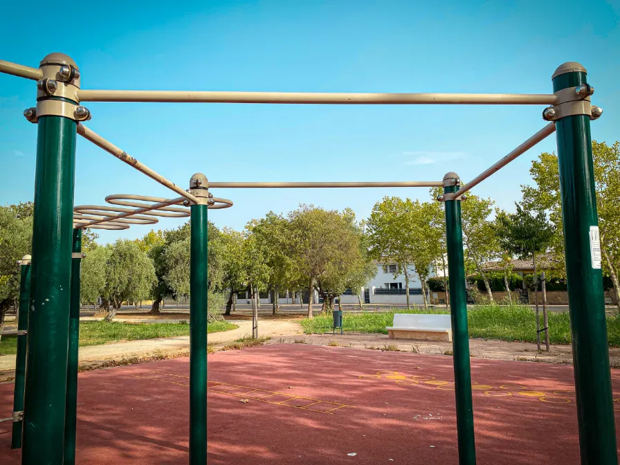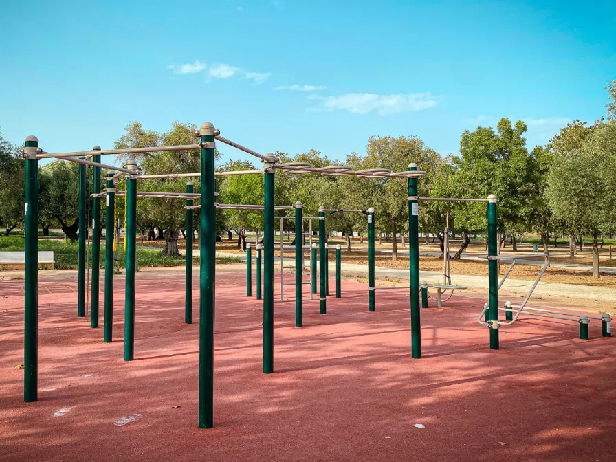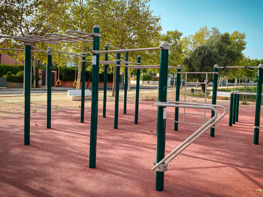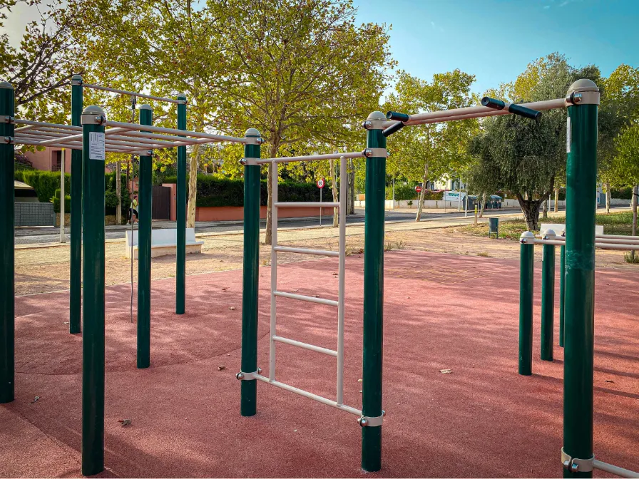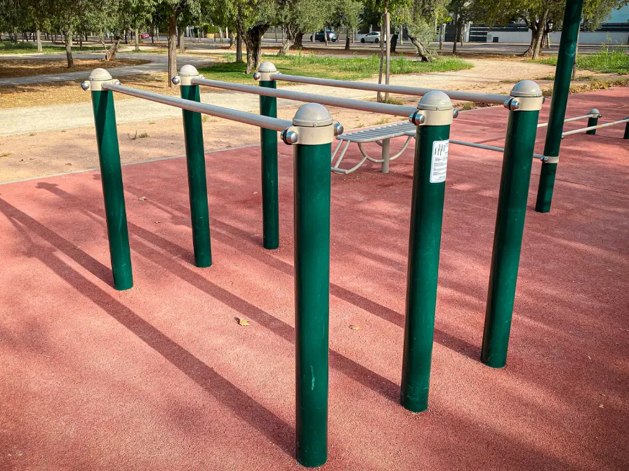 El parque cuenta con un complejo de barras a diferentes alturas para dominadas unidas a una barra snake. Además de un complejo de barras Monkey unidas a una pared sueca, paralelas de suelo, una doble paralela, una triple paralela, una barra baja y un banco abdominal.