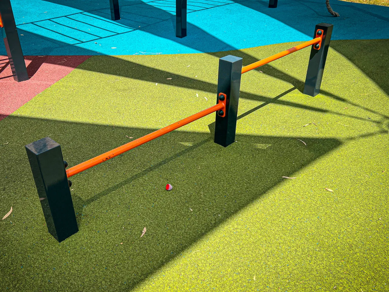 Las barras de este parque están fabricadas por alguna empresa que desconocemos. La calidad de las barras es aceptable, sus acabados también, aunque la distancia de seguridad podría ser mejor, por lo que hacer dinámicos va a ser complicado.