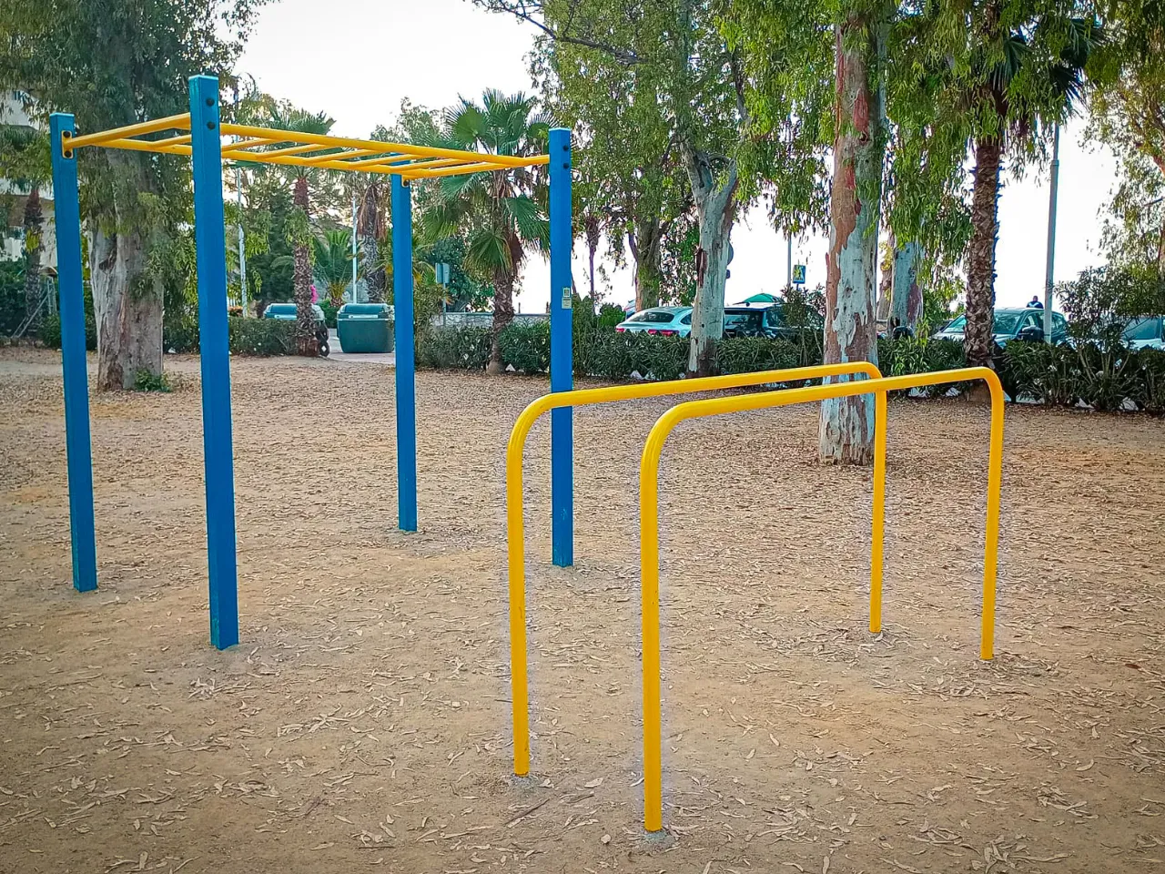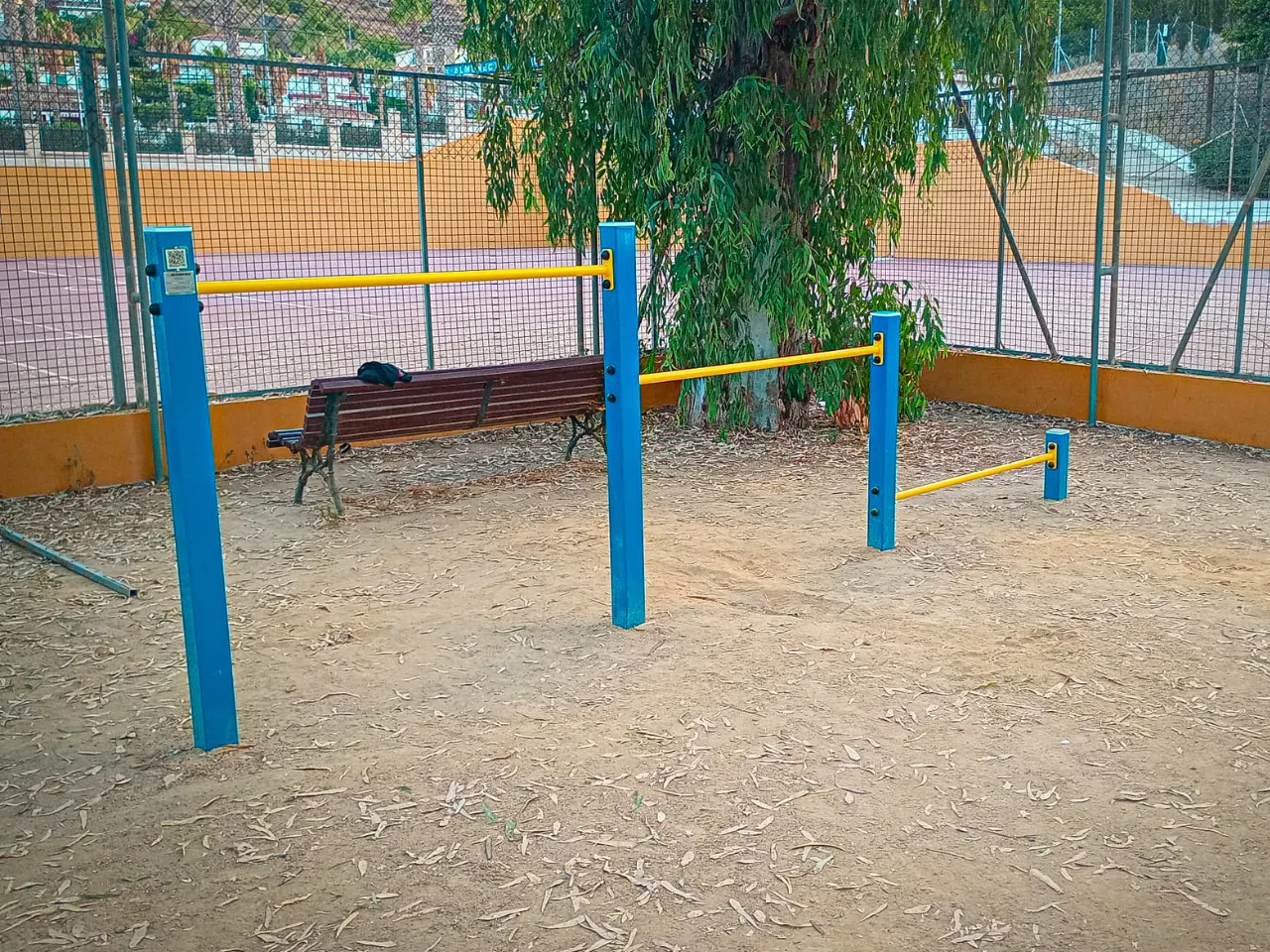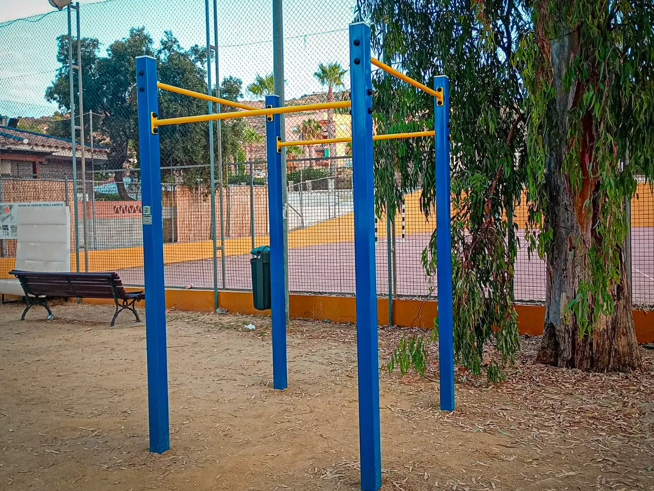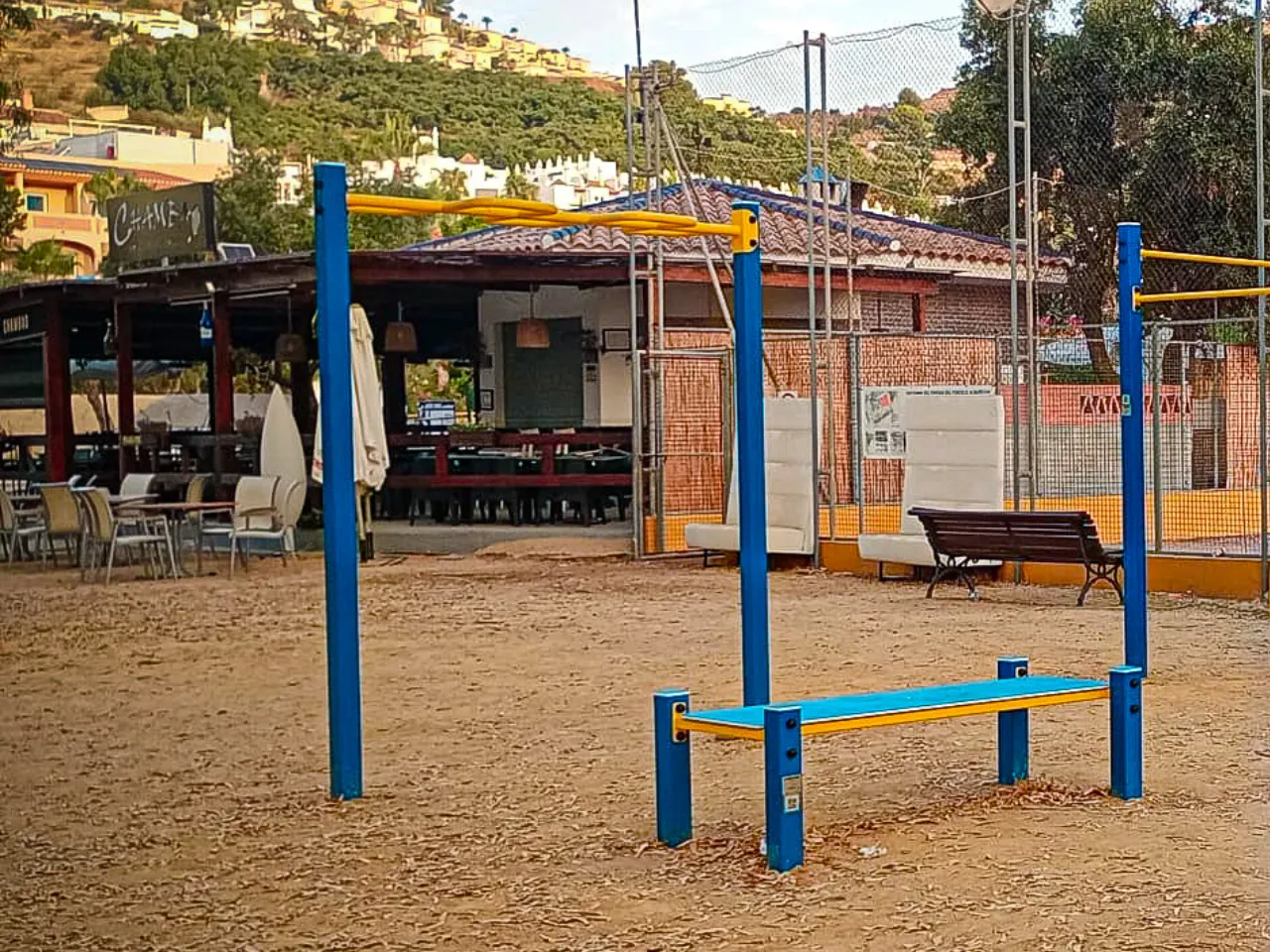 Las barras están sobre un suelo de arena duro, lo que va a dificultar los ejercicios de movilidad, y también los ejercicios de balance o pinos, aunque los puedes realizar sin problemas, pero tendrás que encontrar zonas que estén rectas y donde menos grava te encuentres o bien practicarlo en alguna acera cercana.