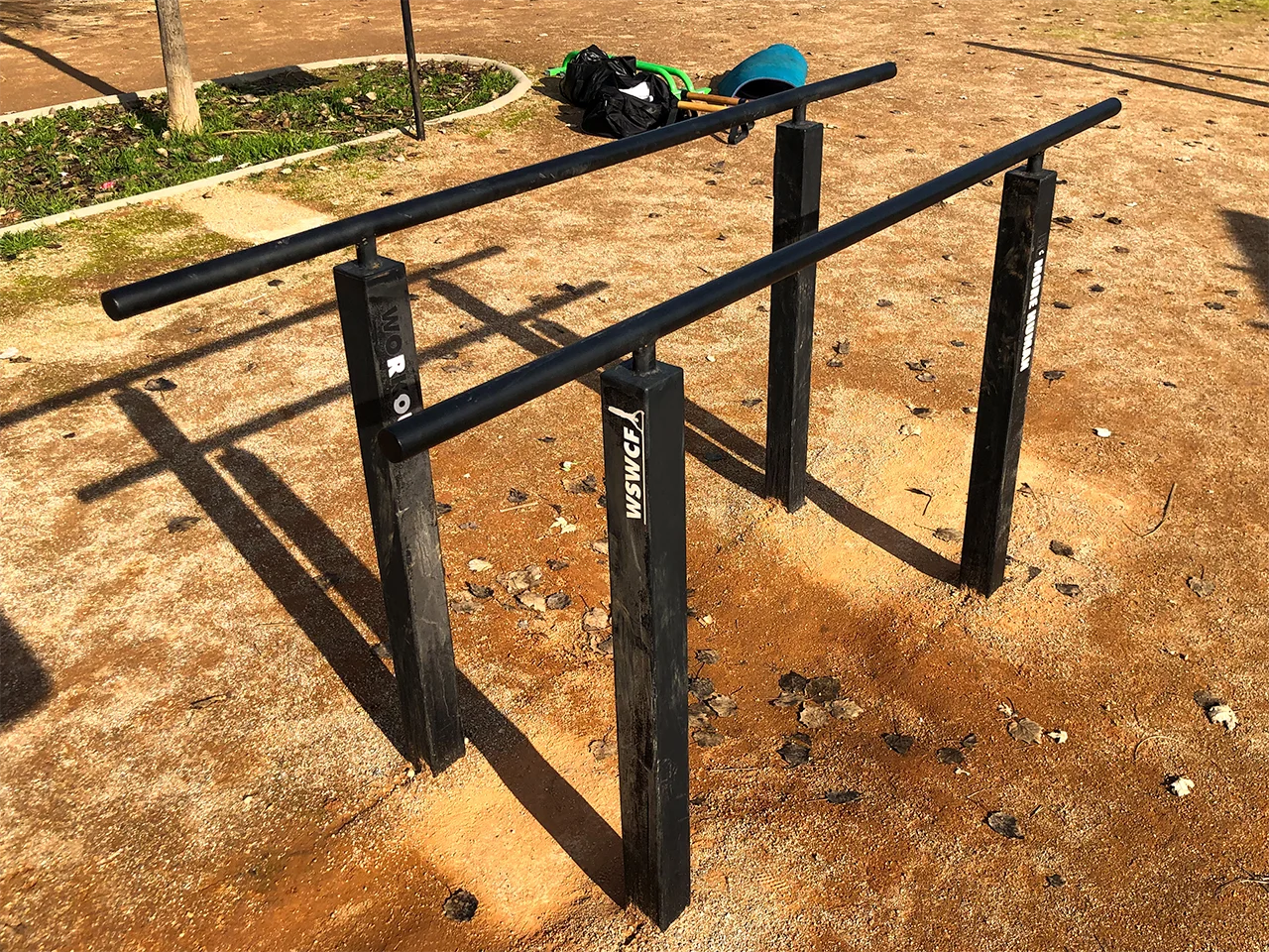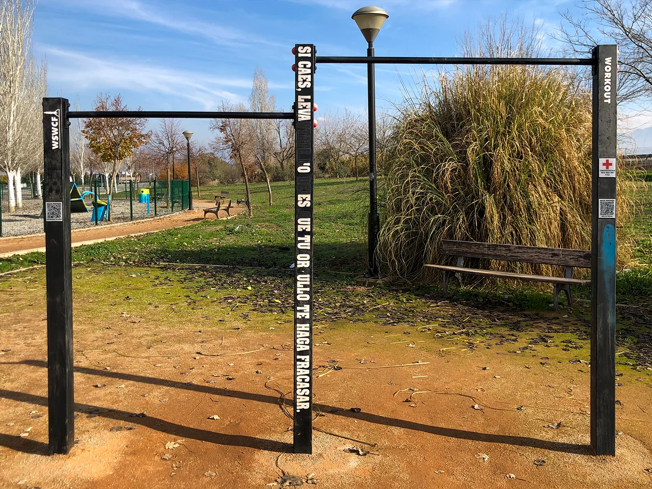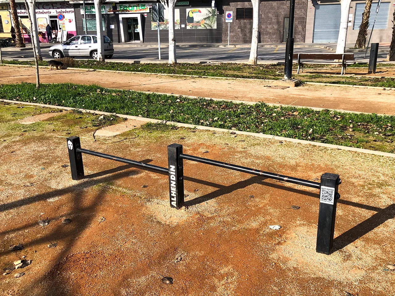 La estructura de barras que vemos en este parque está diseñada por un herrero local cuya disciplina es el entrenamiento funcional y que también ha fabricado parques para los pueblos de Cenes de la Vega, Alfacar y Tiena. Es por eso que podemos echar en falta aparatos con mejor desempeño para la Calistenia, algo que sucede a menudo con ayuntamientos que construyen parques «low cost».