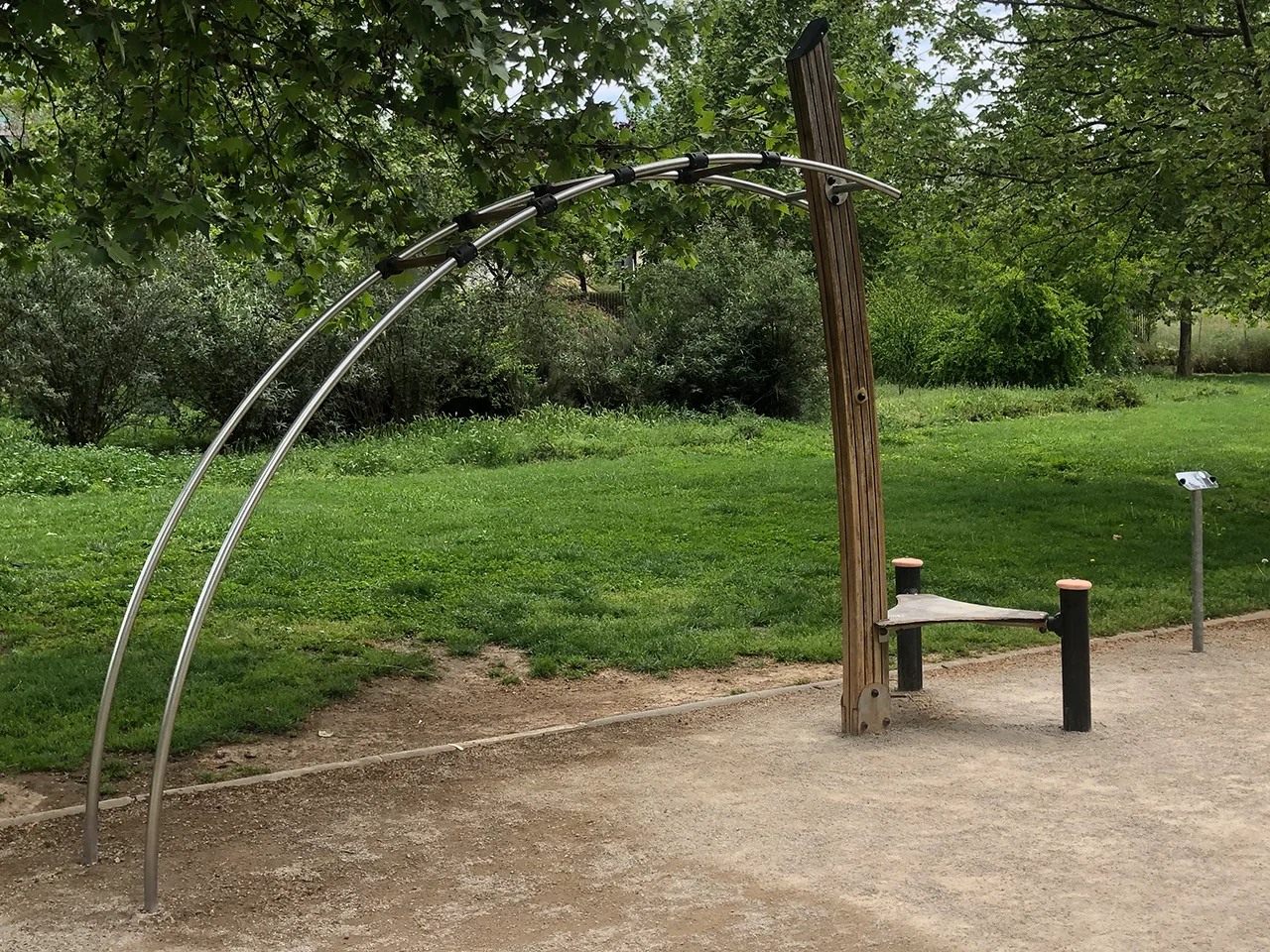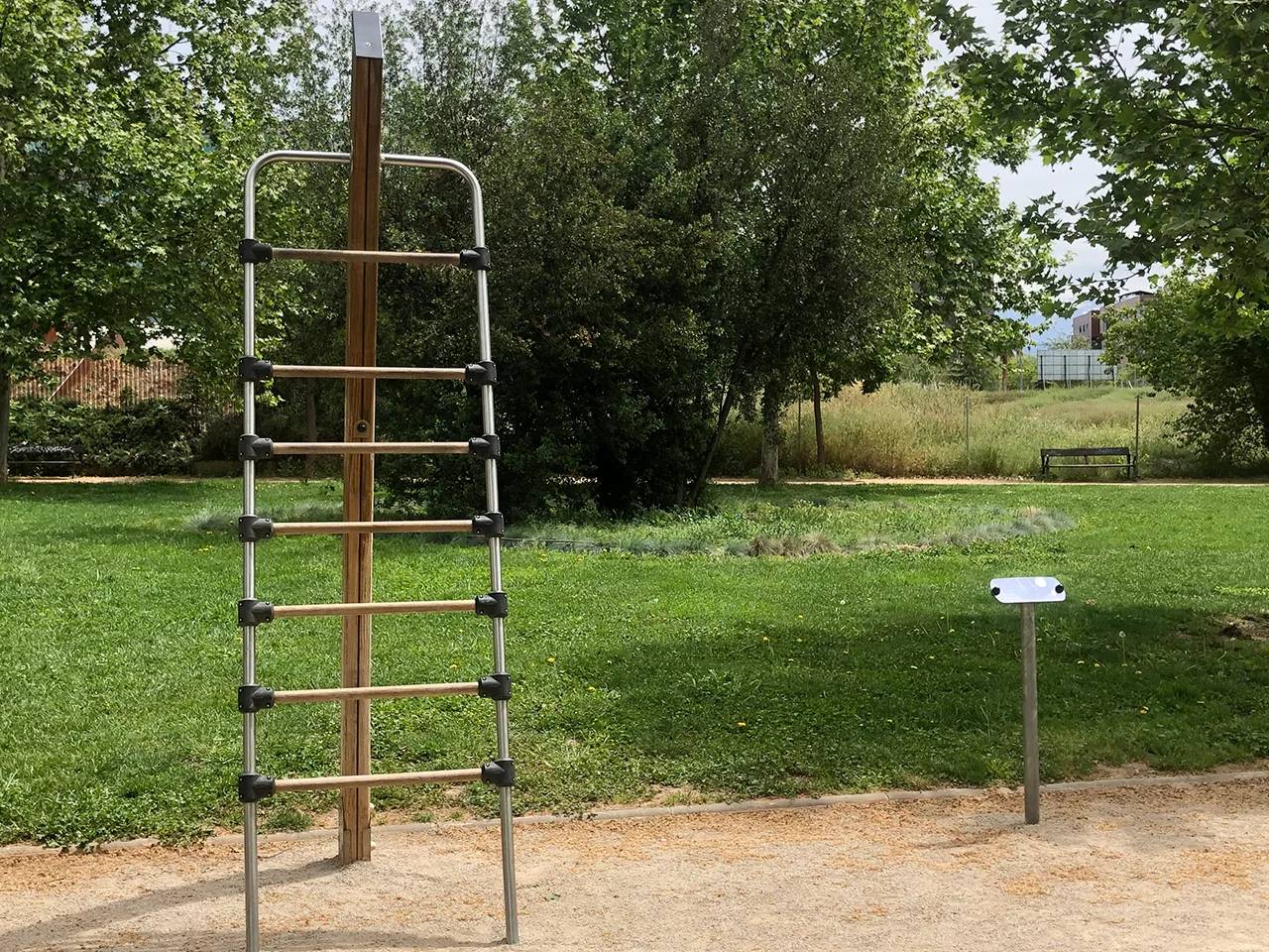 Las instalaciones que nos encontramos aquí son barras de dominadas a diversas alturas, paralelas, monkey, escalera sueca y otros elementos que no están destinados a Calistenia.