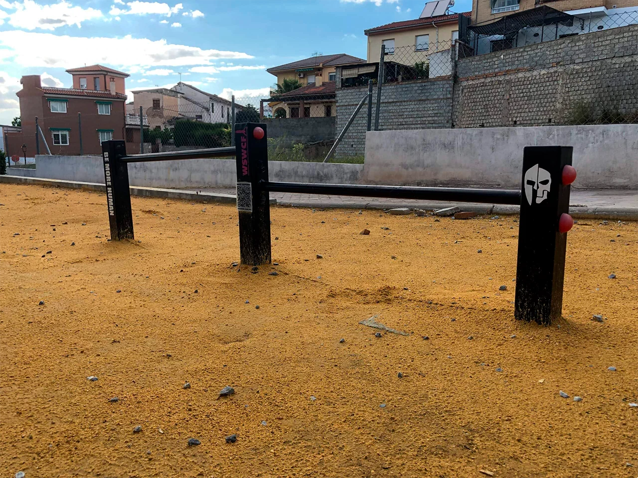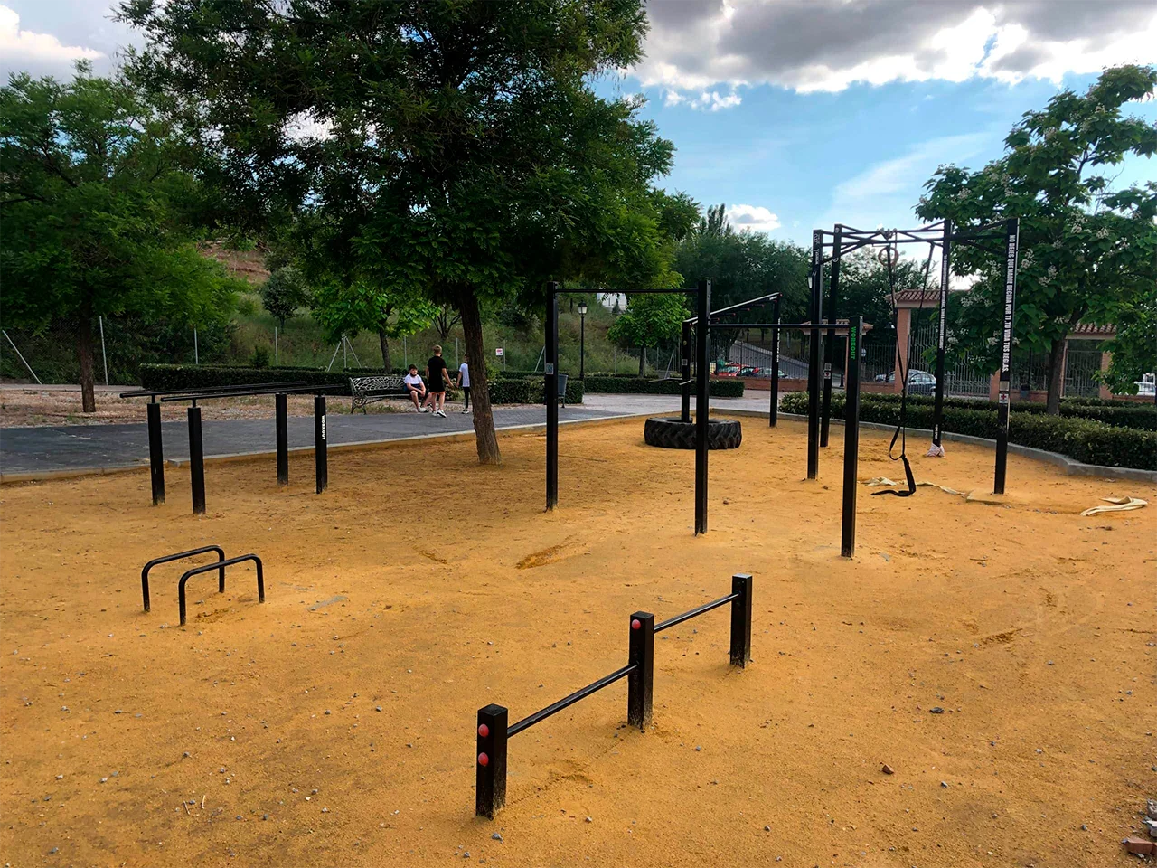 El parque se encuentra dentro de un recinto en el que comparte espacio con un parque infantil. El ambiente suele ser tranquilo y podrás entrenar cómodo/a ya que no está muy frecuentado.