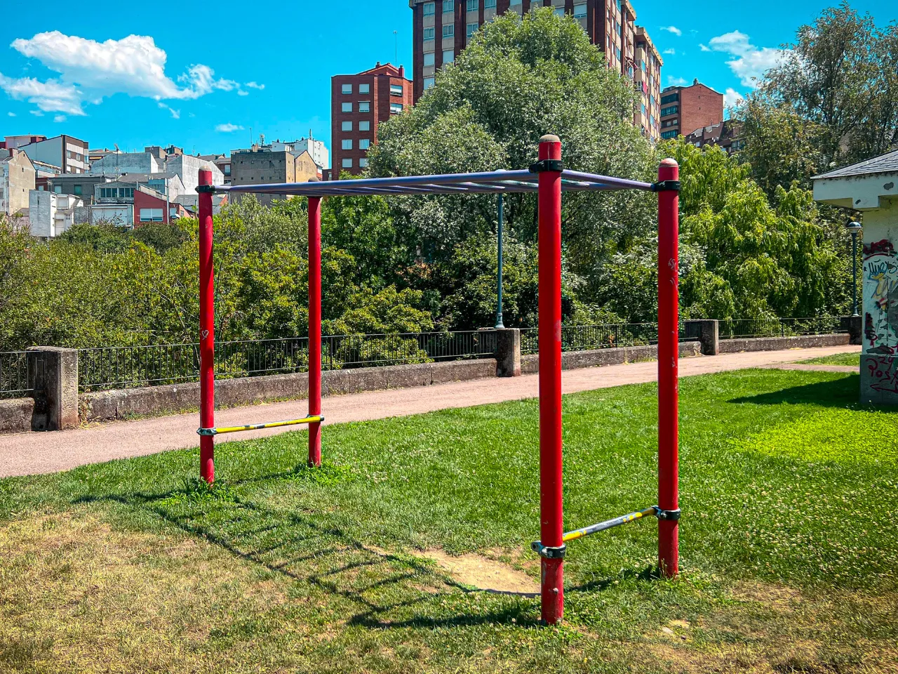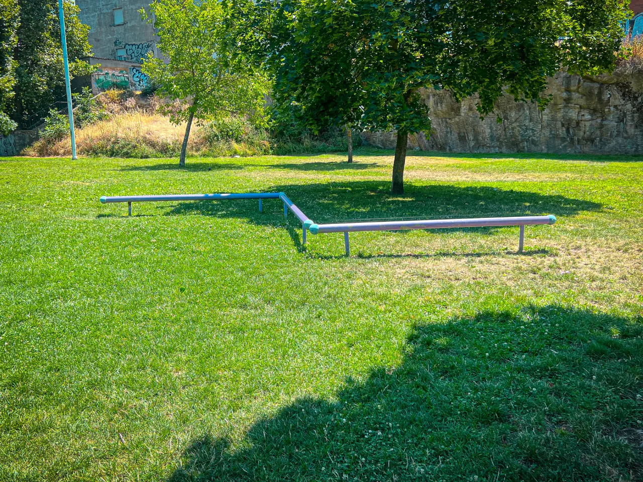 El parque cuenta con dos barras bajas, unas barras de dominadas, barras monkey, un circuito de barras bajas, una doble paralela y una espaldera o pared sueca.