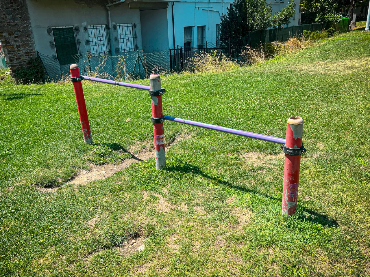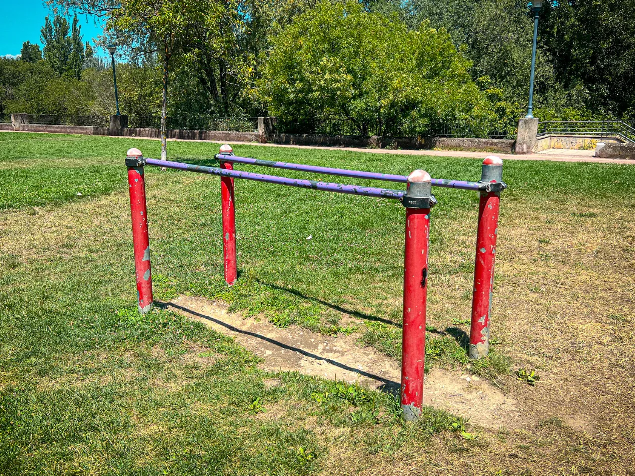 Las barras de este parque están fabricadas por alguna empresa que desconocemos y que no está especializada en Calistenia. Debido a ello, la calidad y los acabados de las barras son muy malos, ya que la pintura de las barras está bastante deteriorada y la distancia de seguridad entre unos aparatos y otros podría ser mejor.