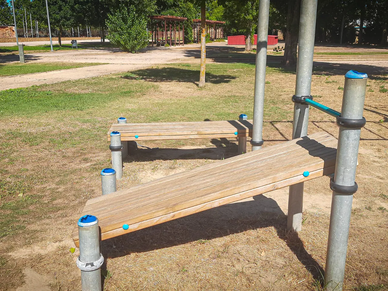 El parque cuenta con un complejo de barras a diferentes alturas, unido a una barra Monkey y pared sueca. También hay una triple barra francesa, una doble paralela y un par de bancos abdominales.