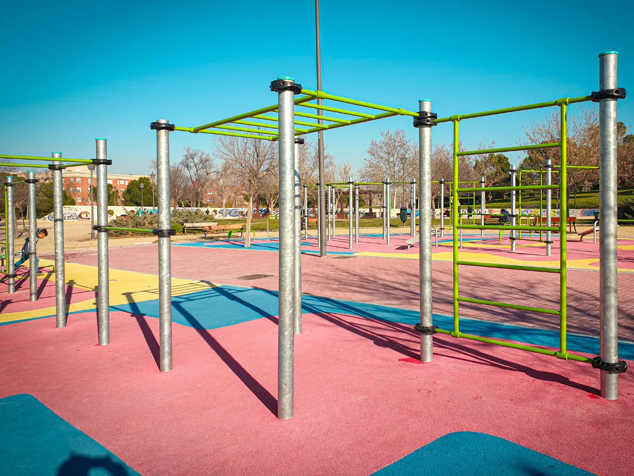 El parque de Calistenia se encuentra en Latina, 28047 Madrid a 20 minutos del centro de la capital. Su ubicación lo hace un sitio tranquilo y acogedor para la práctica de esta disciplina.