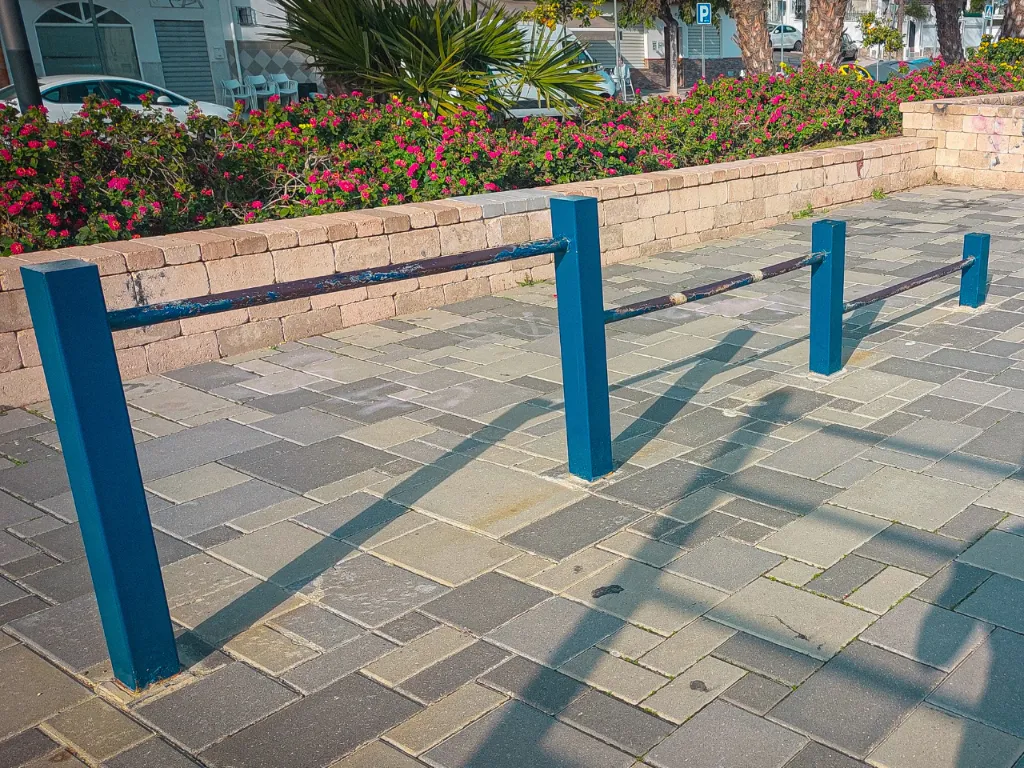 Las barras de este parque están fabricadas por alguna empresa que desconocemos. La calidad de las barras es mala, ya que la pintura está desgastada y muy oxidada. La distancia de seguridad de los aparatos podría ser mejor para practicar ejercicios dinámicos con mayor seguridad.