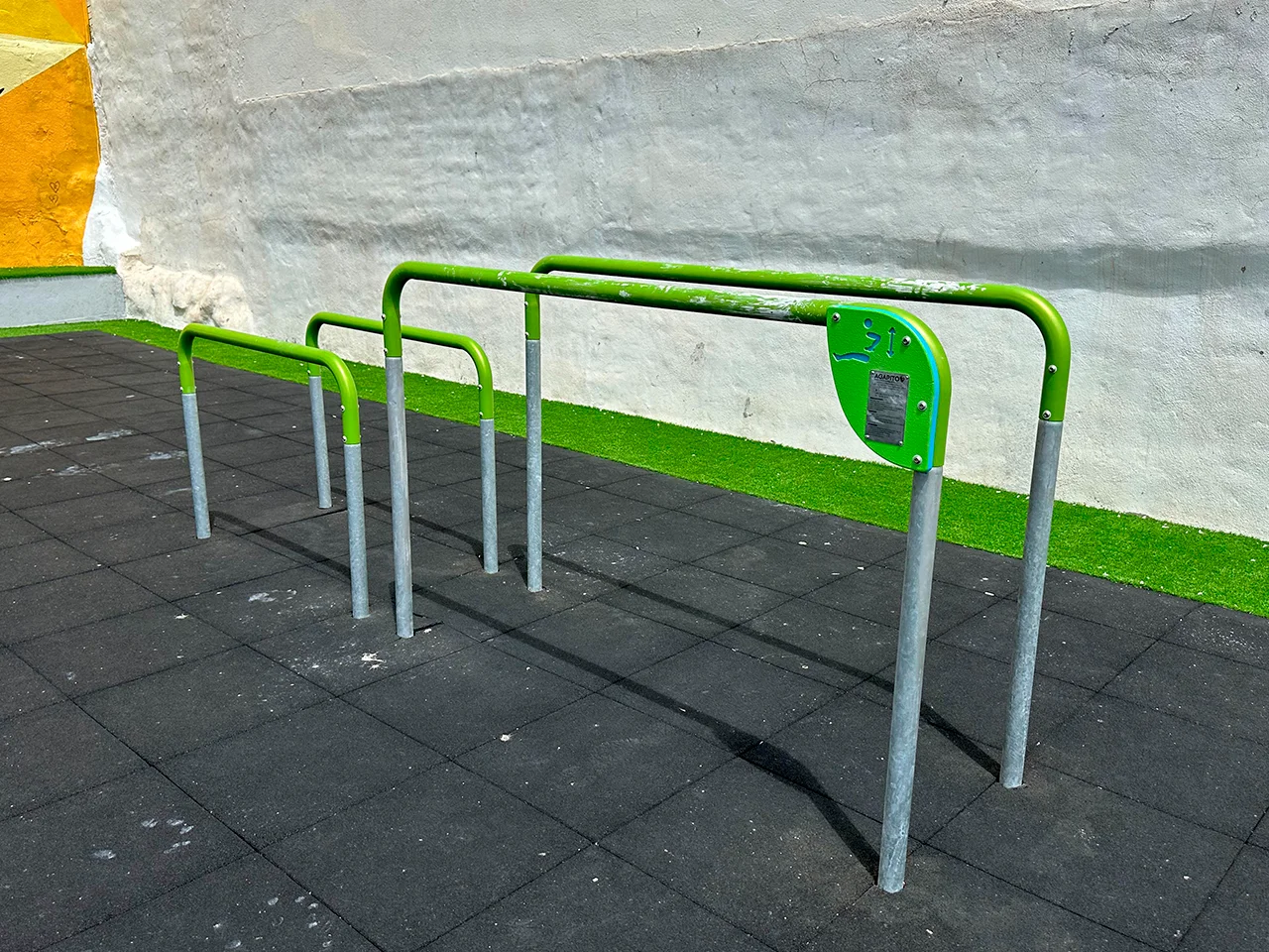 Dejando eso de lado, el parque ofrece buenas opciones de entrenamiento con: banco de abdominales, barra para flexiones, barras de FreeStyle, paralelas de suelo, paralelas para niños (no muy comunes), doble paralela (que encontramos baja para los adultos), barras monkey, escalera sueca y barras de dominadas.