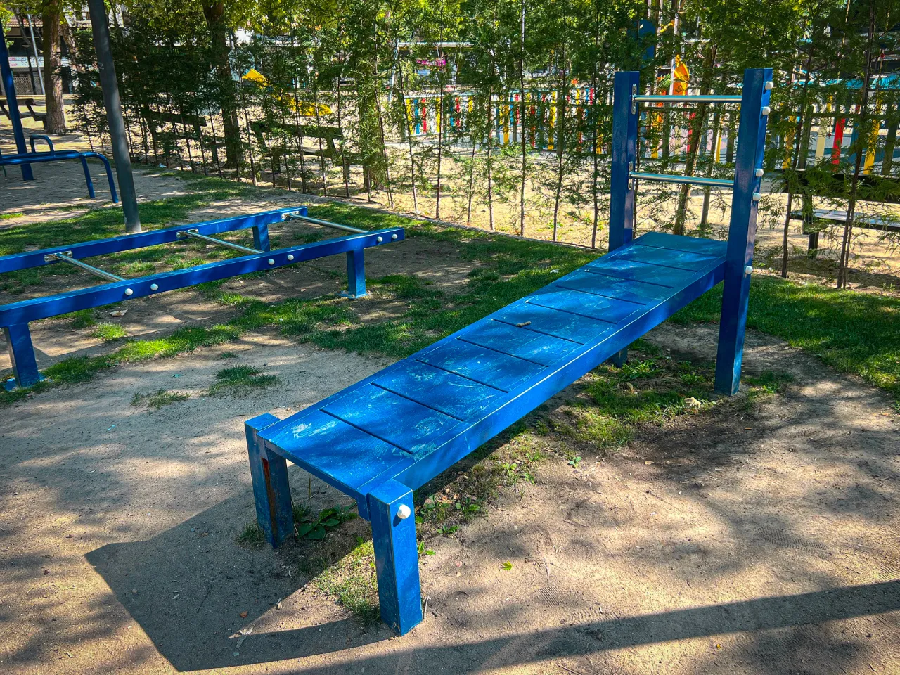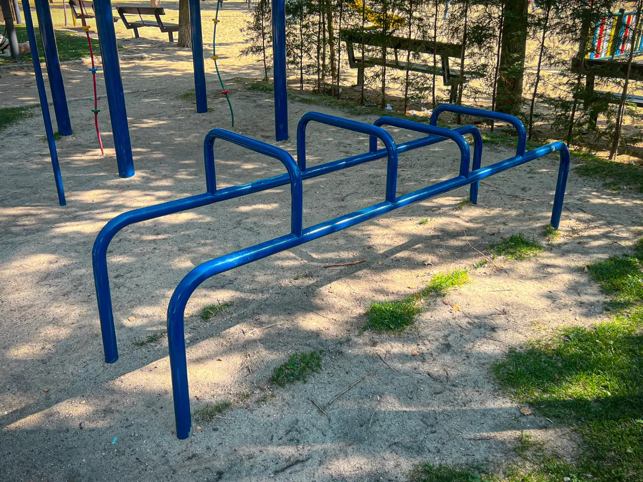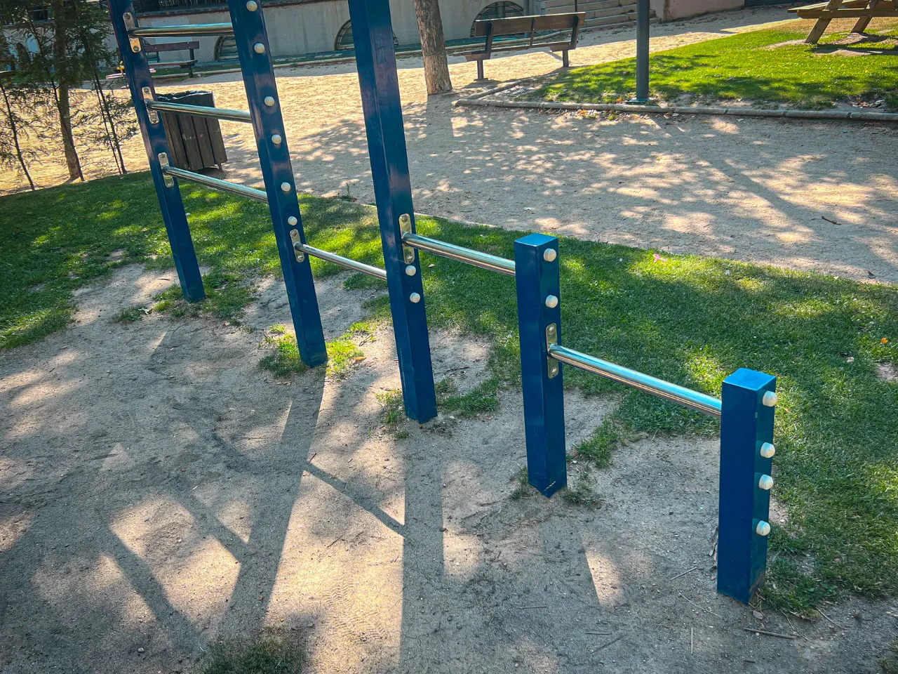 Las barras de este parque están fabricadas por alguna empresa que desconocemos y que no está especializada en Calistenia. Debido a ello, la calidad y los acabados de las barras son muy malos, y la distancia entre unos aparatos y otros también.