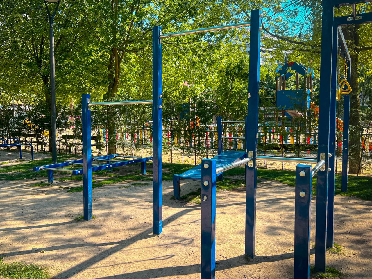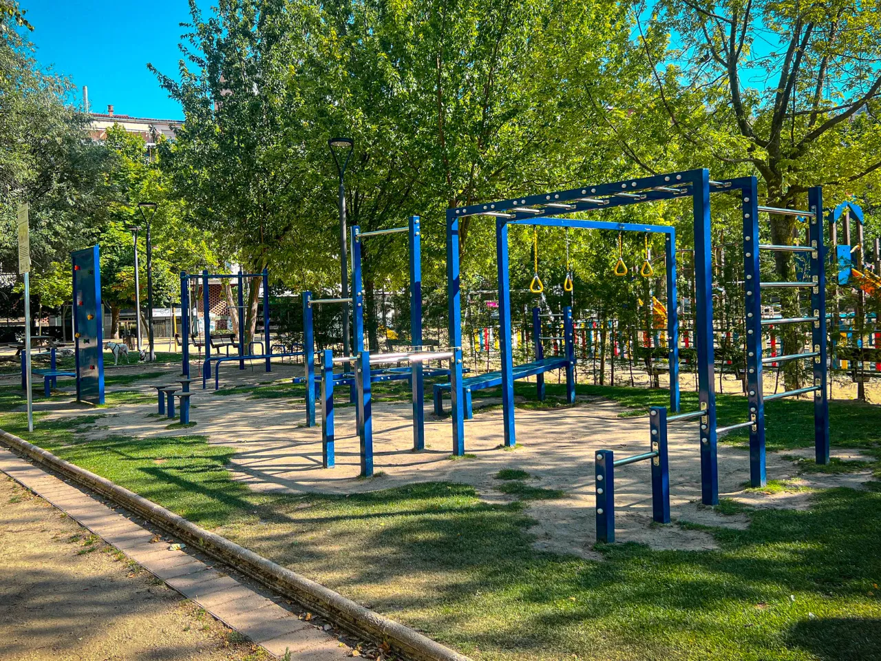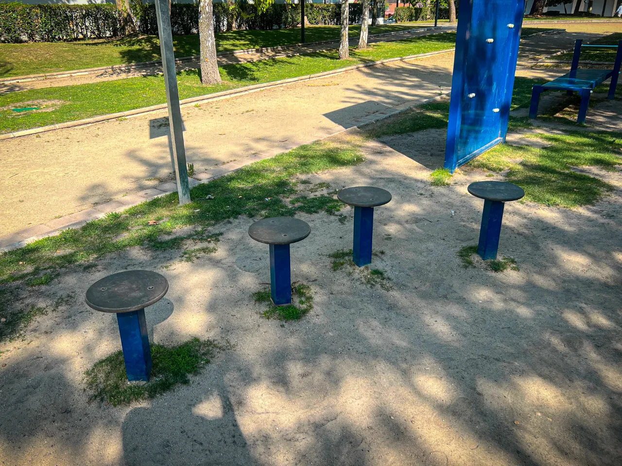 El sitio donde se encuentra el parque es tranquilo. Su ubicación rodeada de naturaleza lo hace un lugar idílico para practicar Calistenia. El suelo es duro, por lo que no amortigua bien las caídas pero para ejercicios de balance o pinos, sí es un suelo agradable, aunque tendrás que encontrar zonas que no tengan mucha grava y que estén rectas.