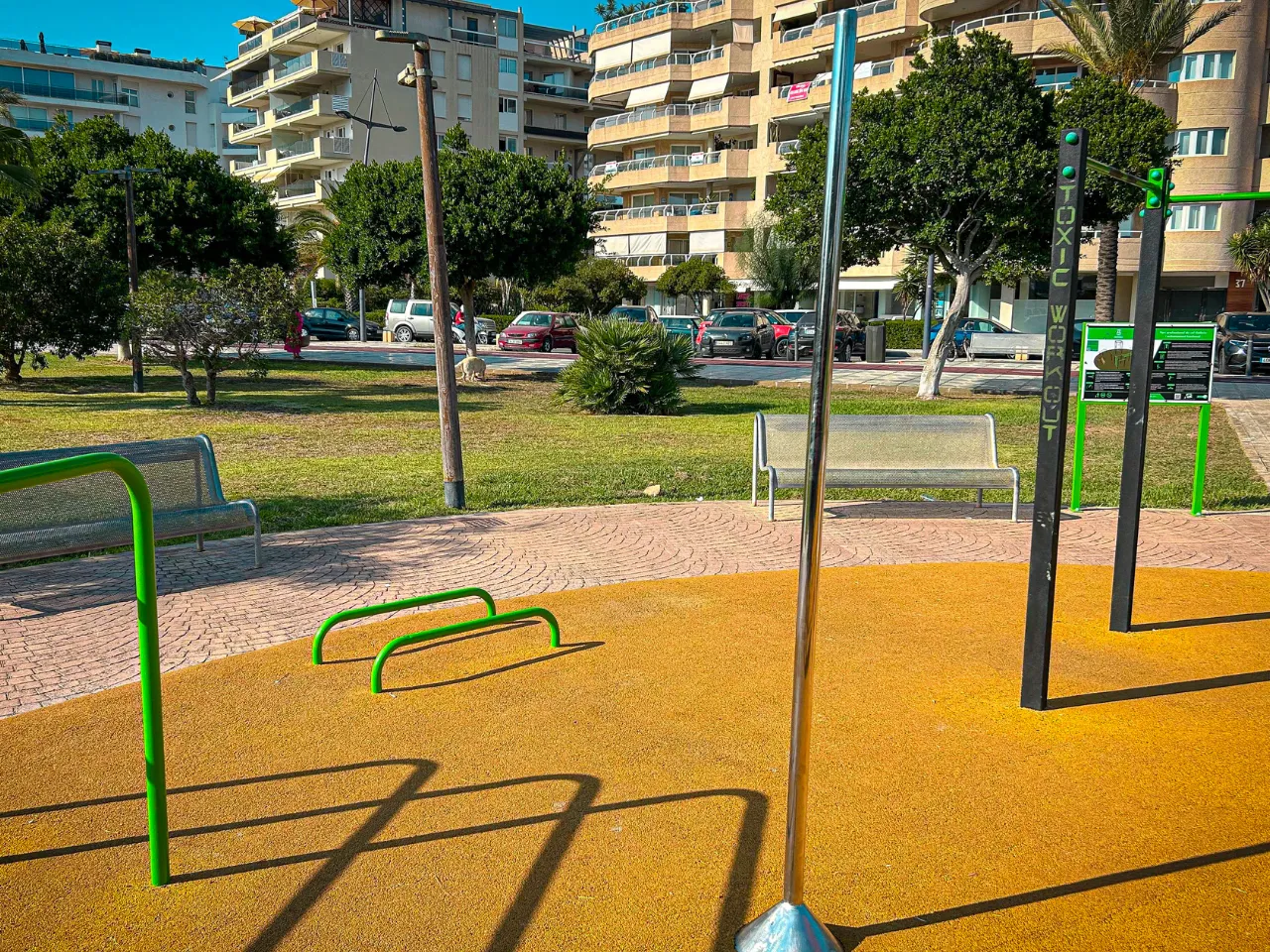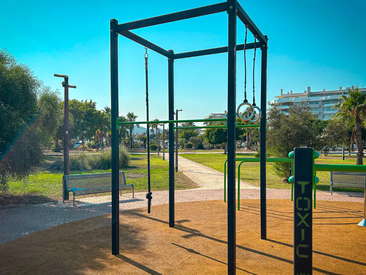 El ambiente en el parque es tranquilo y estimulante, lo que lo convierte en un espacio ideal para entrenar con calma y concentración. Su ubicación cerca del mar crea un entorno agradable y relajado, que invita a mantenerse activo, ya sea practicando calistenia de forma individual o en grupo. Es un lugar que fomenta un estilo de vida saludable tanto entre residentes como entre quienes visitan la isla.