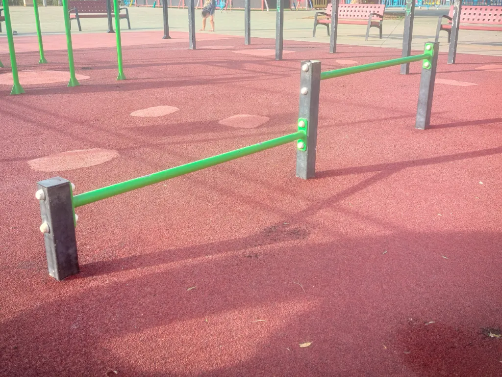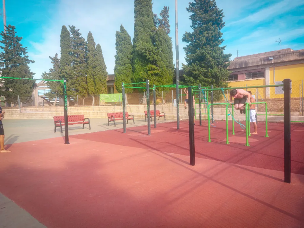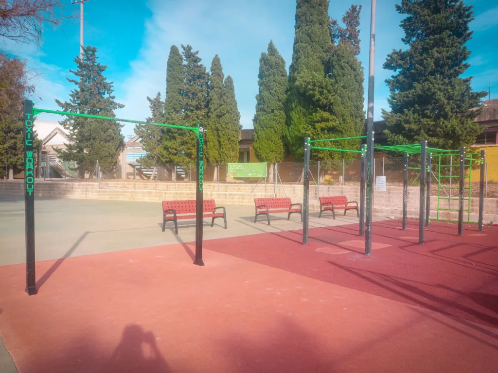 En este parque podemos encontrar un complejo con barras de dominadas, espaldera o pared sueca y barras monkey, además, barras de FreeStyle a diferentes alturas, una doble barra de flexiones y una triple paralela.