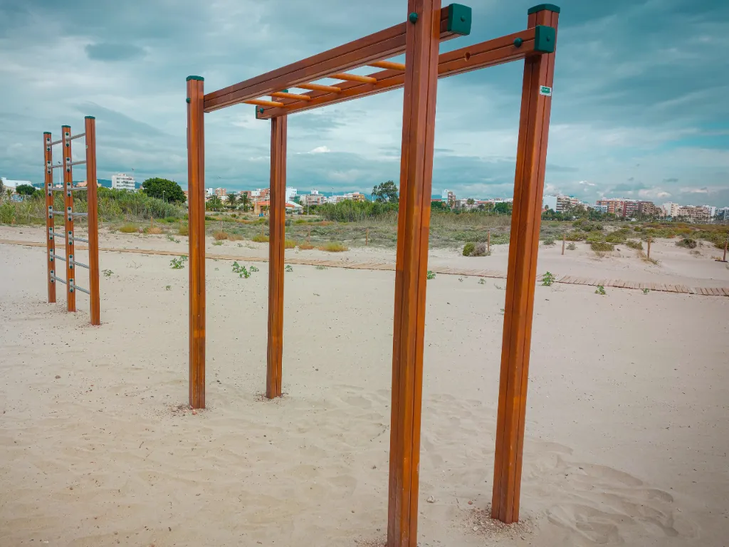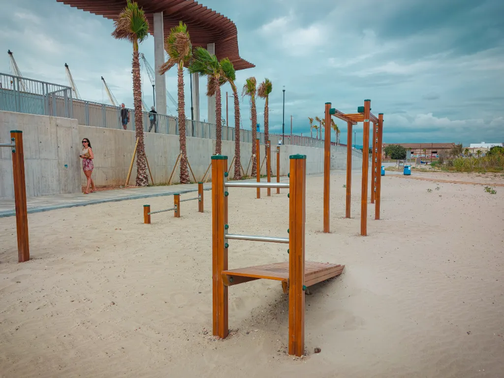 El sitio donde se encuentra el parque es de lo más agradable. Su ubicación al lado del mar lo hace perfecto para practicar Calistenia, con un suelo de arena que amortigua estupendamente las caídas que puedas sufrir. También podemos ejercitar la movilidad encima de la arena y los ejercicios de balance justo en la pasarela que lleva a la playa.