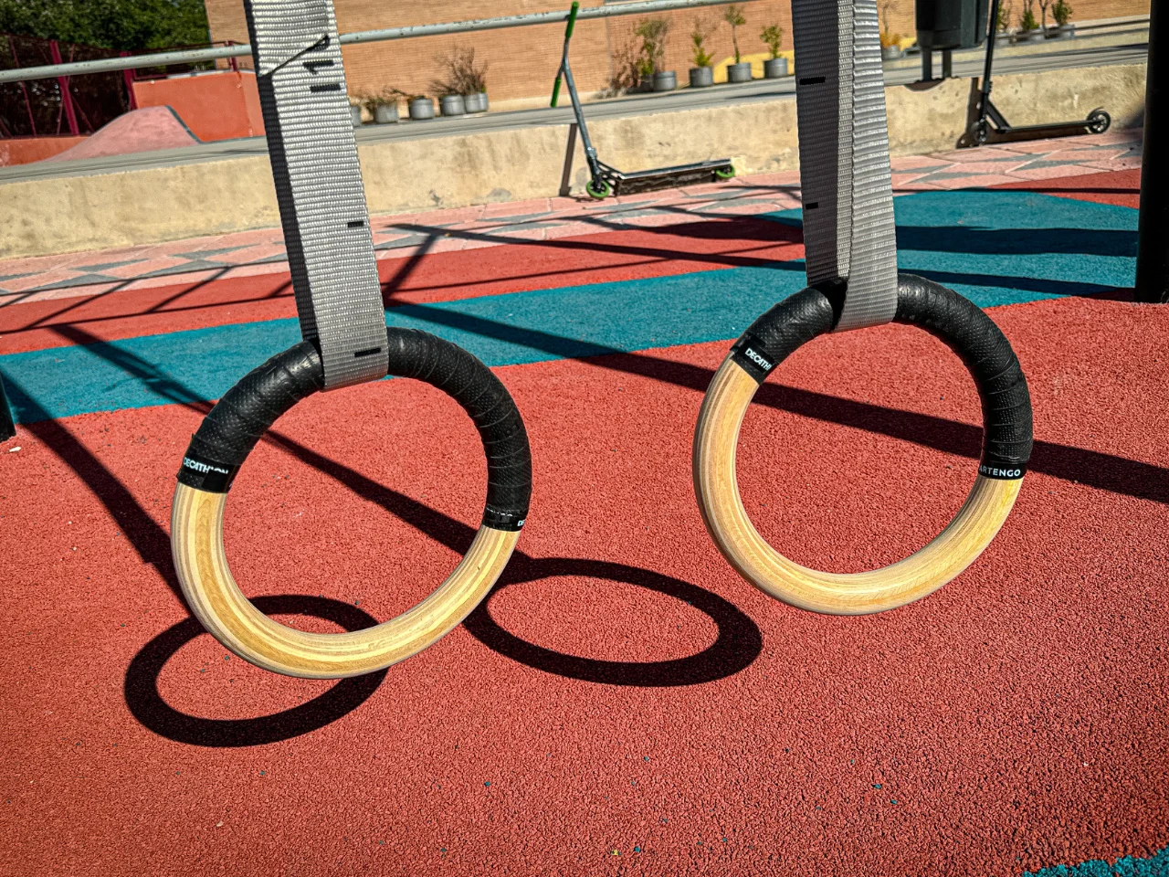 El equipamiento portátil busca sustituir de una forma muy versátil a los aparatos que se encuentran en el parque de Calistenia. Con ellos podrás entrenar prácticamente todo el abanico de ejercicios a excepción del Freestyle, ya que se requiere una barra bien fijada al suelo y unas distancias suficientes para poder practicar de forma segura.