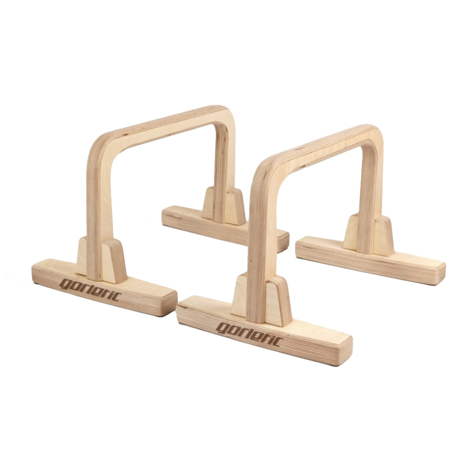 Si buscas paralelas medianas de madera, Gorletic está aquí de nuevo como referente en buen material y calidad de acabados. Este modelo es muy estable y el palo cuenta con bordes redondeados para que no tengas que renunciar a ninguna variante de plancha o handstand.