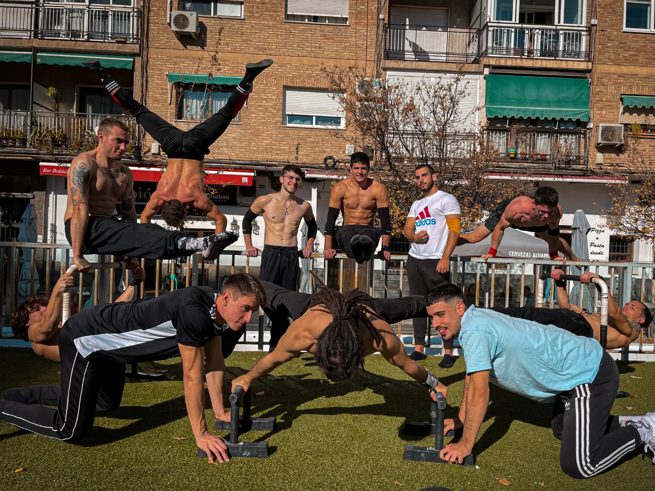 Realizamos exhibiciones y talleres de calistenia en los que mostramos nuestras habilidades, enseñamos las bases de la calistenia y promovemos los valores de este deporte, en el que la superación, el estilo de vida saludable y la amistad están tan presentes.